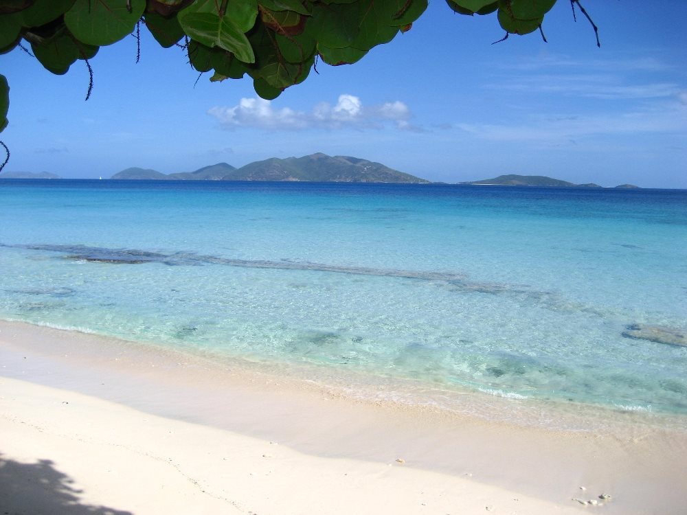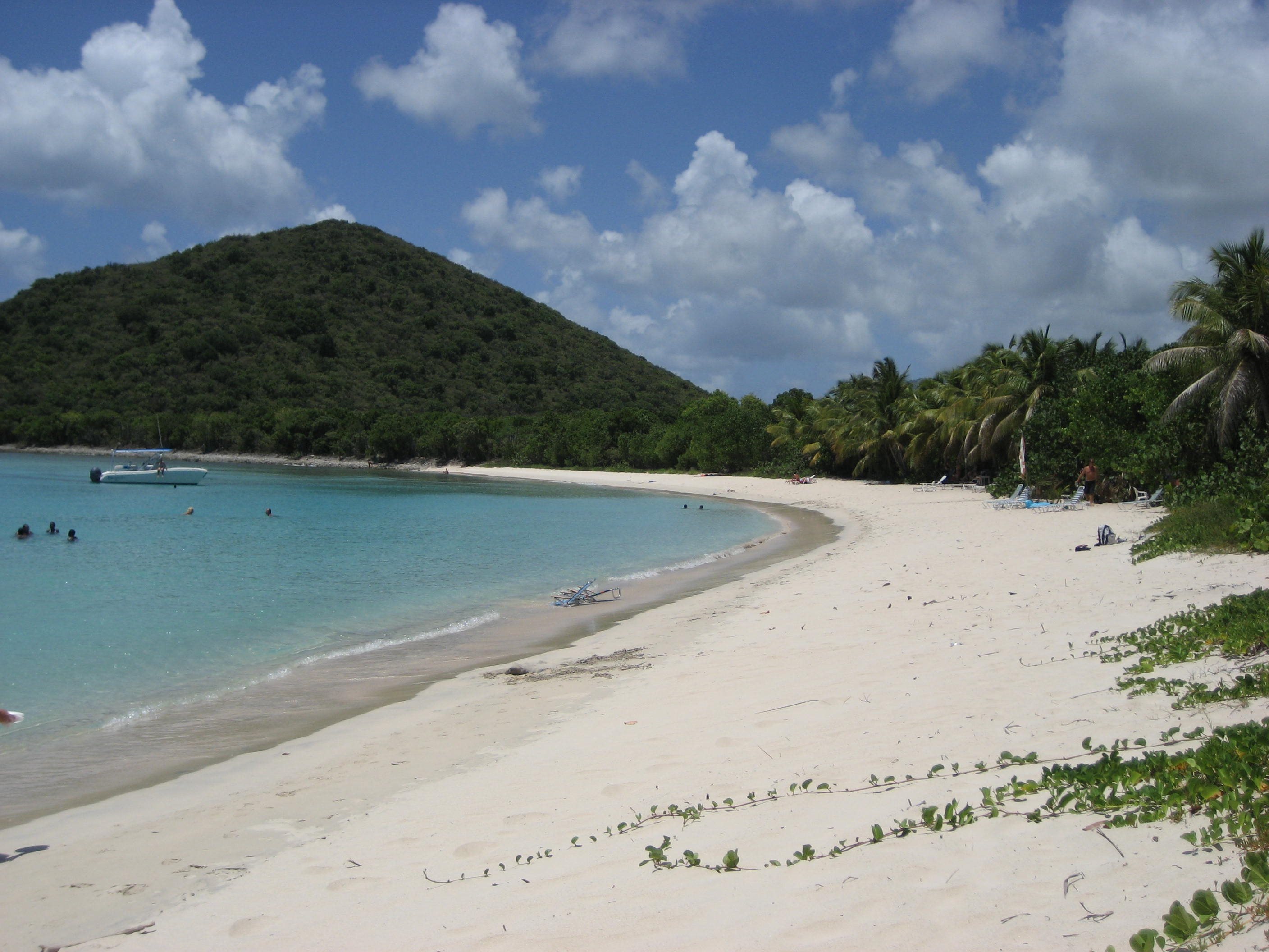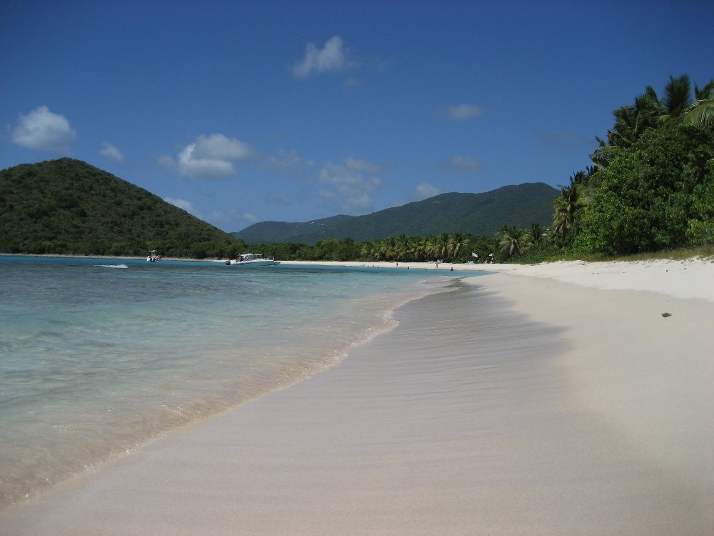 This is in North Sound just off Virgin Gorda. It has a long pristine stretch of white sand, calm water and a beach bar.