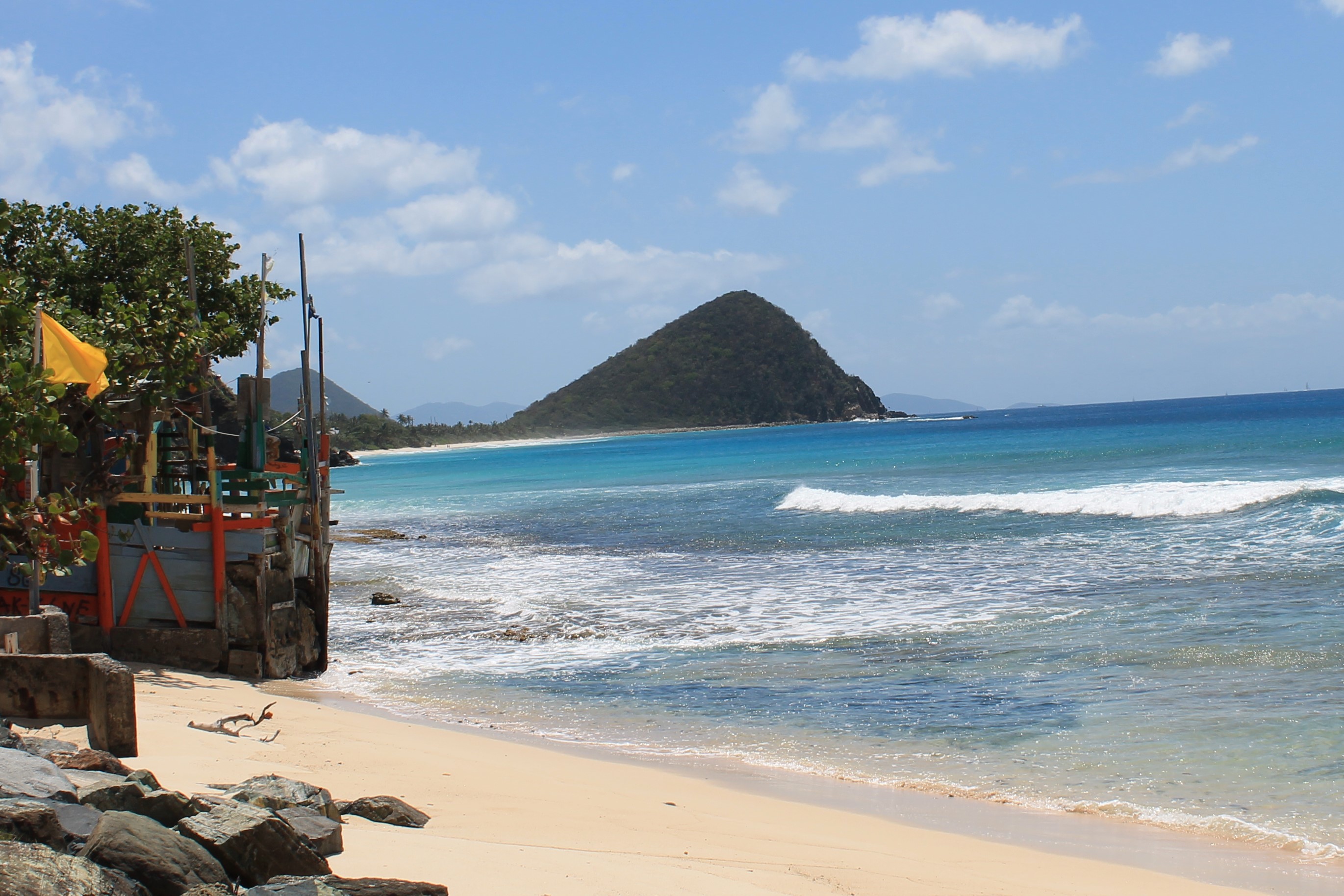 This is a beautiful curved bay and is a popular anchorage with yachters. The water is calm and ideal for small children. There are plenty of restaurants on this beach.  Try to avoid this beach on a cruise ship day.